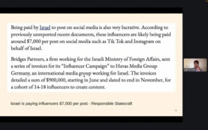 Ouvrant la discussion, le professeur Miriyam Aouragh, anthropologue à l’Université de Westminster, a présenté la hasbara comme une exigence essentielle de tout « projet violent de domination ».