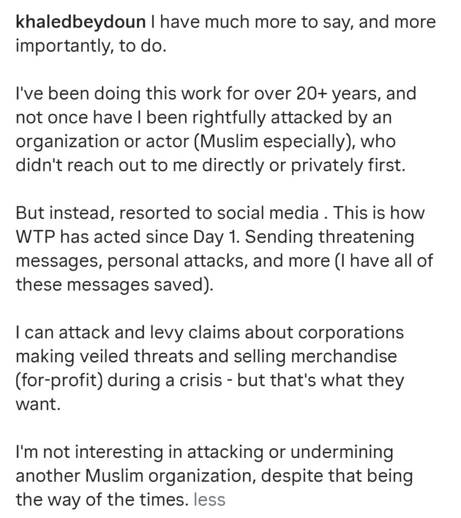 Khaled Beydoun a également publié la déclaration suivante sur Instagram :