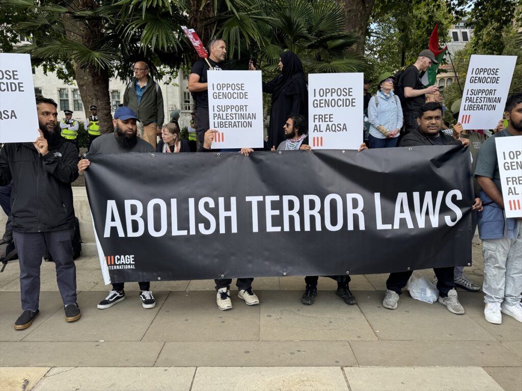 Le rapport raconte un incident survenu en juin 2024 au cours duquel Muhammad Rabbani de CAGE et plusieurs autres personnes ont été arrêtés lors d’une petite manifestation de solidarité devant le tribunal de première instance de Westminster.