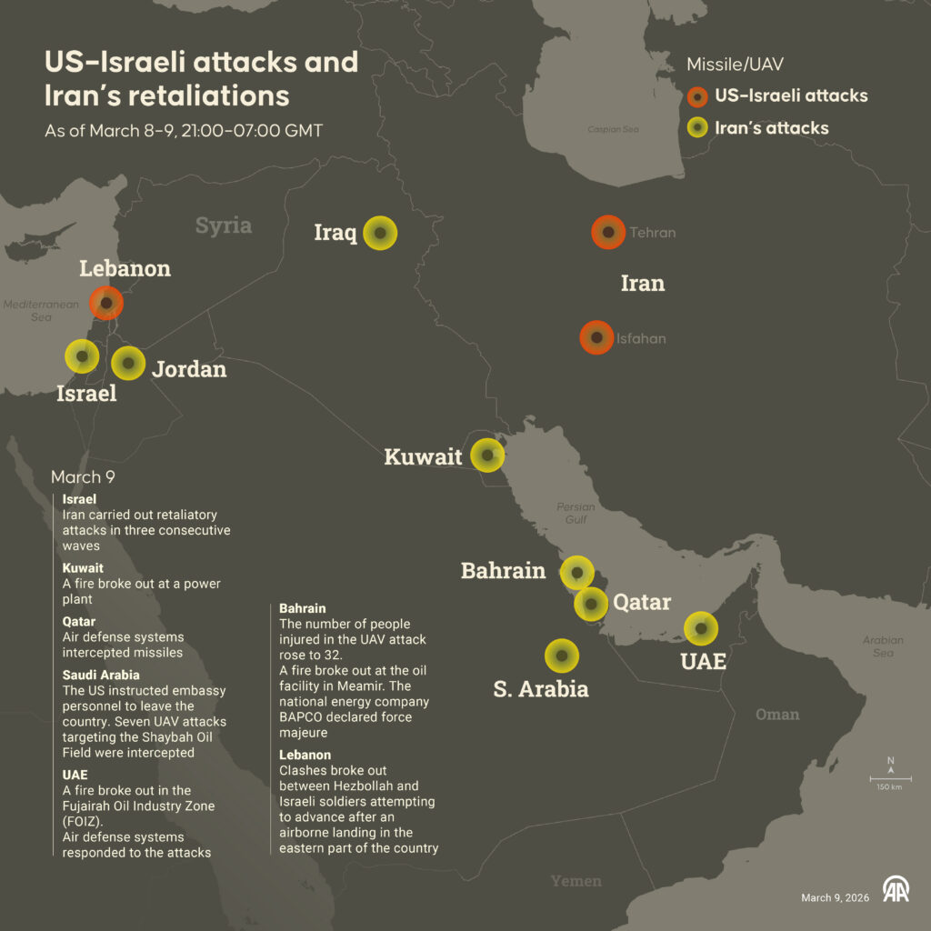 Parmi les pertes supplémentaires figurent des terminaux de communication par satellite détruits lors de frappes contre le quartier général de la Cinquième flotte de la marine américaine à Manama, à Bahreïn, ainsi que plusieurs bâtiments de l’installation.