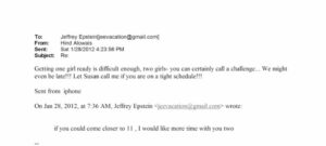 Les échanges de courriers électroniques entre elle et le pédophile condamné Jeffrey Epstein en 2011 et 2012 semblent avoir permis d’organiser des rencontres directement avec Epstein, ainsi qu’avec sa sœur cadette.