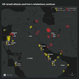 Les États-Unis et Israël ont poursuivi leurs frappes contre l’Iran pour le troisième jour, l’Iran intensifiant ses frappes de représailles à travers le Moyen-Orient, frappant des bases américaines et des infrastructures énergétiques clés dans le Golfe alors que Trump laisse entendre que la guerre pourrait durer encore un mois.