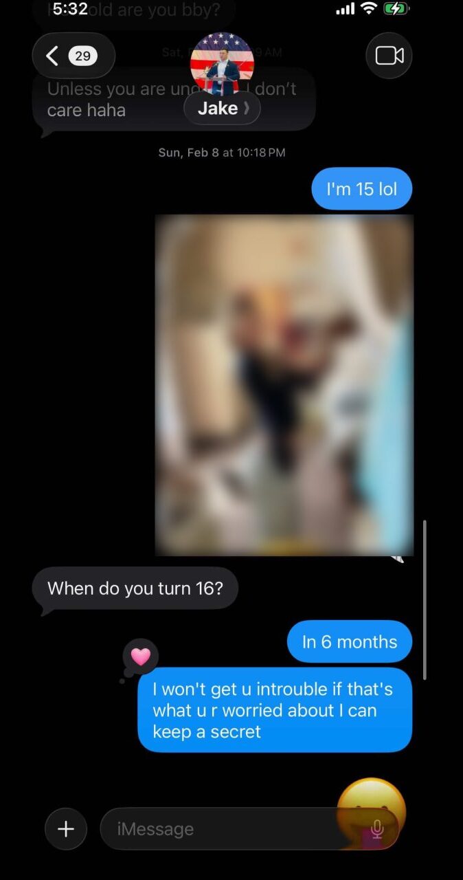 Selon les captures d’écran partagées, la conversation entre Lang et la fausse fille, qu’il appelait « bébé » et « chérie », remontait au moins à novembre. Mais cela a commencé à s’accélérer début février lorsque Lang a tenté de déterminer l’âge exact de la jeune fille.