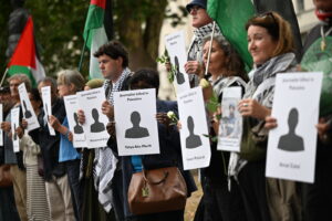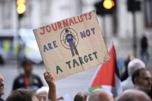 La veillée, organisée par la branche indépendante de l’Union nationale des journalistes (NUJ), a vu des centaines de participants portant des bannières portant les noms de journalistes palestiniens qui ont payé le prix ultime tout en faisant leur travail et en rapportant sur la véritable échelle du sort et de la souffrance de la population civile à Gaza.