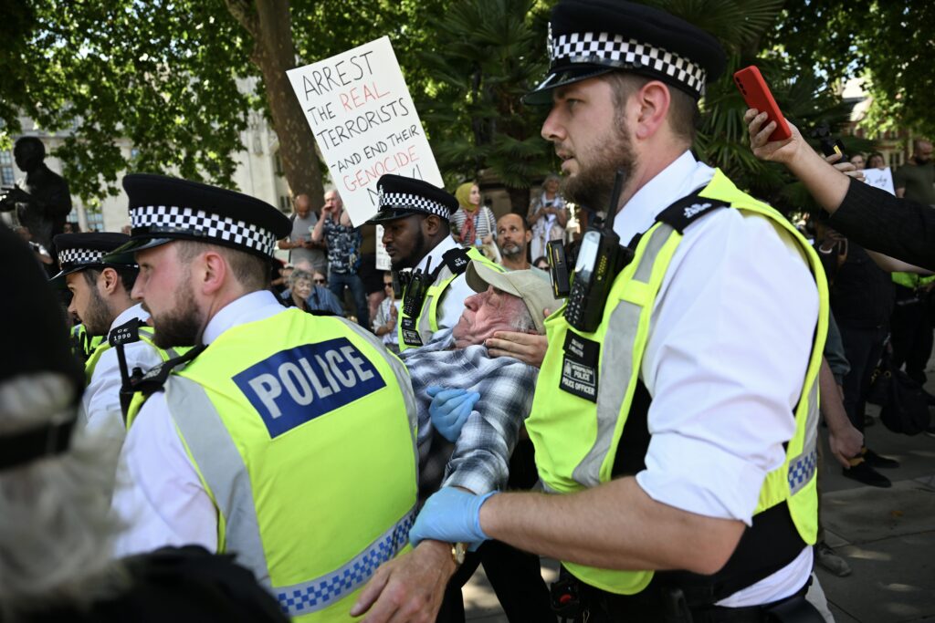 Londres, Royaume-Uni – 9 août: Certains manifestants ont été arrêtés lors d’une manifestation à l’appui de l’action en Palestine à Londres, Royaume-Uni le 9 août