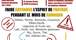 Faire rayonner l’esprit du partage pendant le mois de ramadan. Beaucoup de familles ont besoin de vous. Les personnes ciblées sont parmi les plus vulnérables : veuves et orphelins, personnes âgées, personnes en situation de handicap, étudiants… Pour récolter vos dons, Une ...