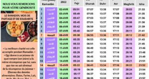 Lire la suite...Calendrier ramadan 2022 – 1443 (IMSAKIA)